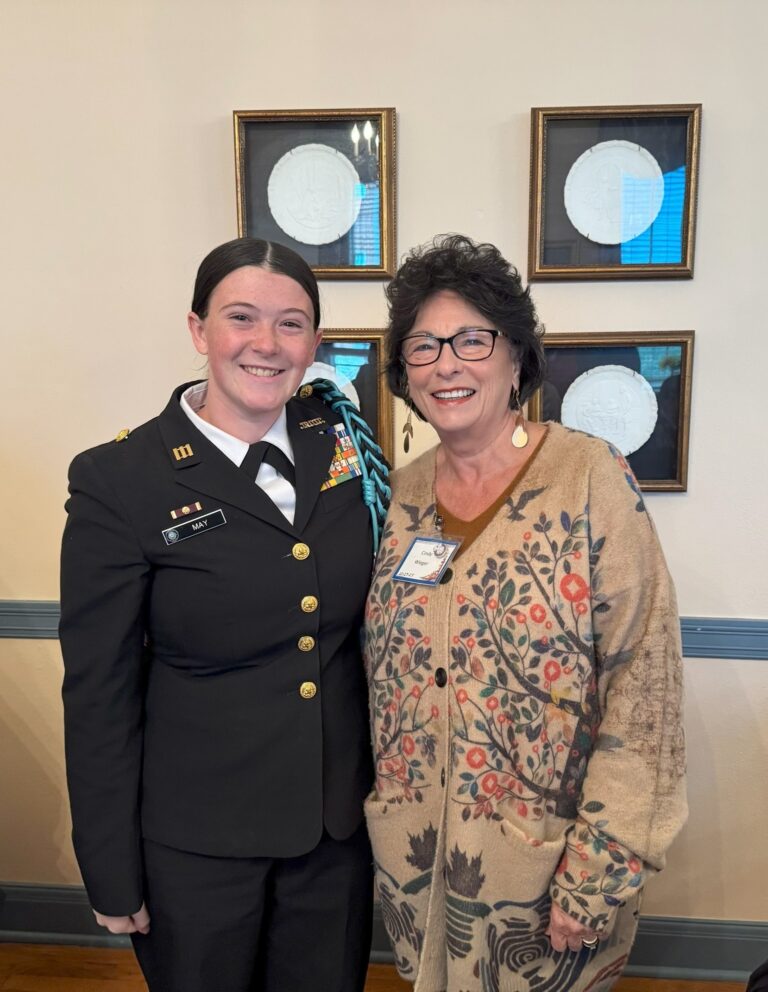 GFWC Ossoli Circle member and Desert Storm veteran Renee Hamilton introduced the Color Guard. Each cadet shared what being part of the Color Guard means to them and their future plans after graduation. Members were touched by the poise and spirit of these outstanding young women.